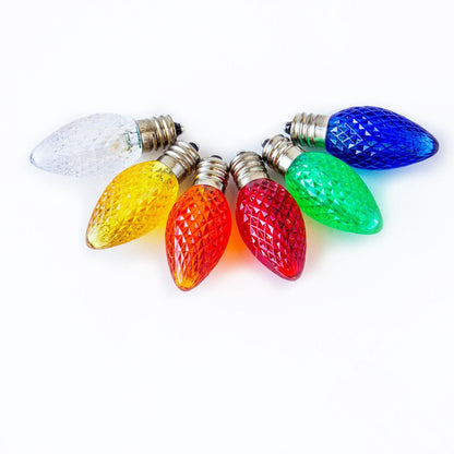 Bold, bright, beautiful lights! Colorful C7 bulbs featuring SMD LED technology emit vibrant, radiating light and last even longer than traditional LEDs while still maintaining the virtually unbreakable, fade resistant, energy efficient benefits you love. Enhance your Christmas greenery with a pop of color, line the roof or illuminate a backyard party with vivid, eye catching LED light!
