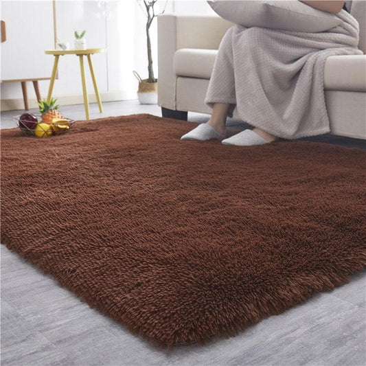 brown tie-dye plush soft living room sofa relax shaggy rug carpet