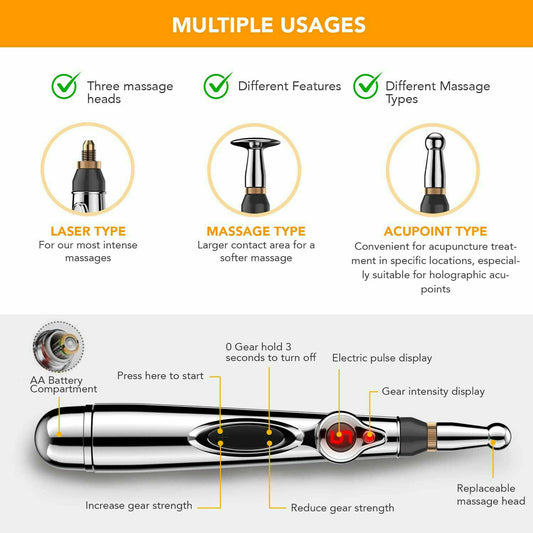 9 Gears Electronic Acupuncture Pen Pain Relif Therapy Massage Pen Meridian Health Care Neck Massage Body Relax Therapy Acupuncture Electronic Pen Meridian Energy Heal Massage Pain Relief