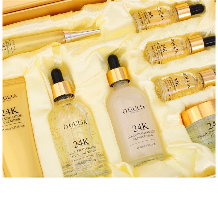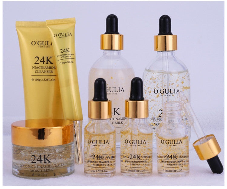 Product Name  8 Pcs Facial Repair Anti Aging 24K Gold Whitening Face Skin Care Set For Gift Face Dark Circle Remove