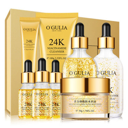 8 Pcs Facial Repair Anti Aging 24K Gold Whitening Face Skin Care Set For Gift Face Dark Circle Remove